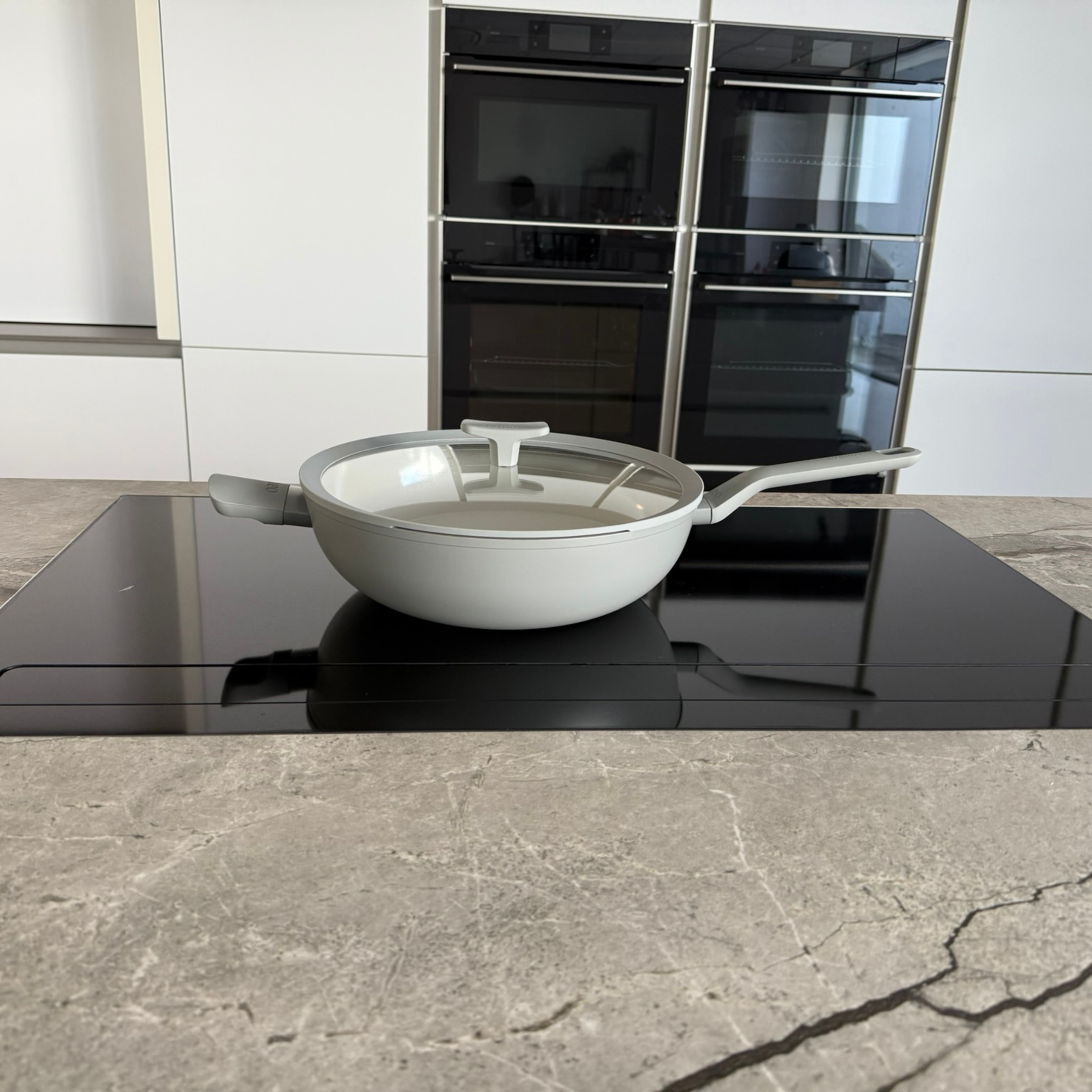 Envie d’un délicieux wok, d’une paella savoureuse ou d’un risotto parfumé ? Avec ce wok de 32 cm avec couvercle en couleur Moonmist, vous créerez les plats les plus délicieux en un rien de temps ! Le corps, fabriqué en aluminium recyclé, garantit une répartition rapide et homogène de la chaleur, économe en énergie, sur tout type de plaque de cuisson, y compris l’induction. Le wok est recouvert d’un revêtement antiadhésif en céramique de haute qualité, durable et sain, qui vous permet de cuisiner avec peu ou pas d’huile et qui rend le nettoyage très facile. Ajoutez à cela les poignées qui restent froides et le couvercle en verre transparent équipé d’un repose-cuillère et d’une fonction de filtration intégrée, et vous avez un wok qui excelle par sa convivialité.